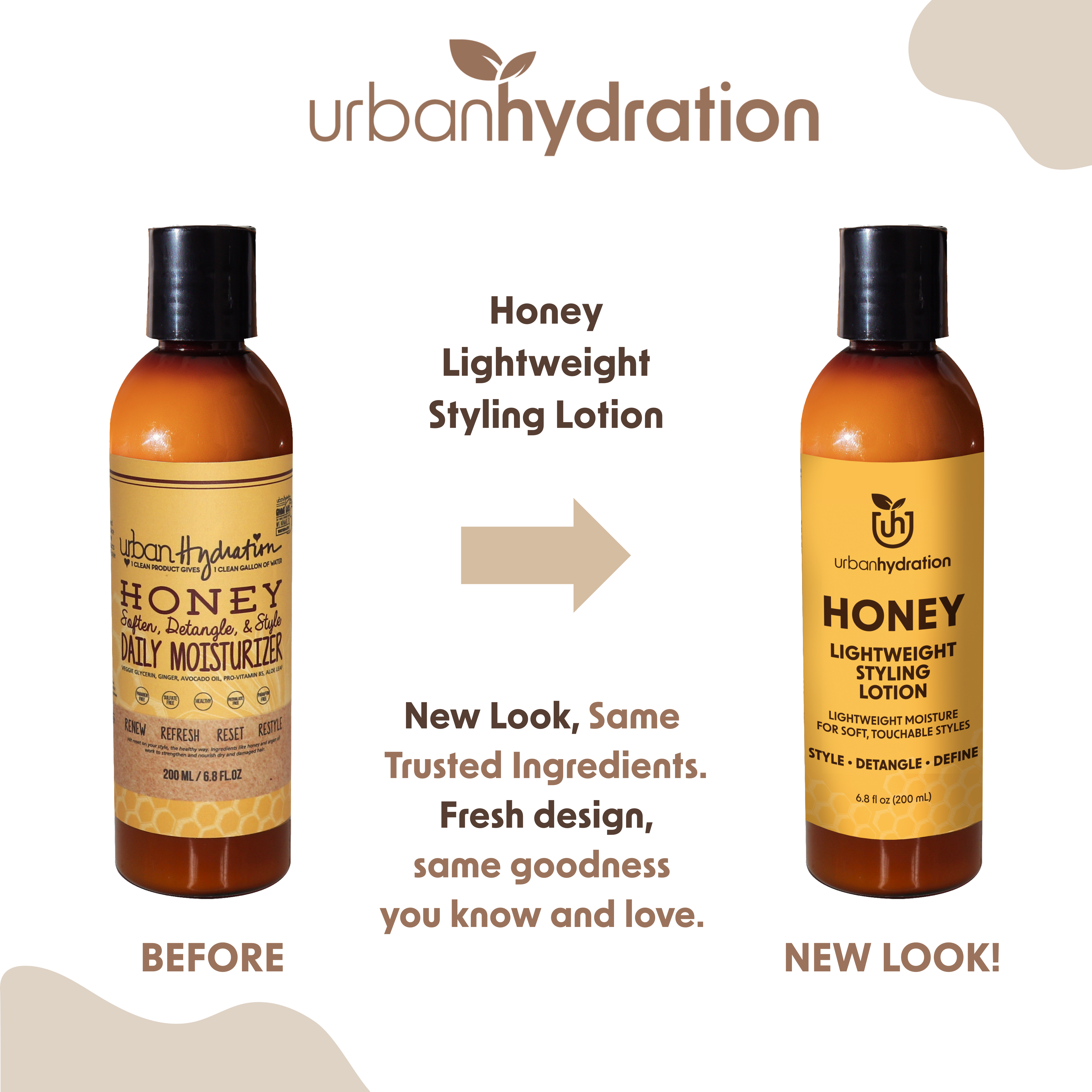 Urban Hydration's Honey Health & Repair Daily Moisturizer offers intense hydration and repair, helping to prevent breakage and tame frizz while enhancing shine and elasticity. Infused with Honey, Argan Oil, Aloe Vera, and Sweet Vanilla Bean extracts, this moisturizer ensures your hair remains soft, smooth, and radiant.