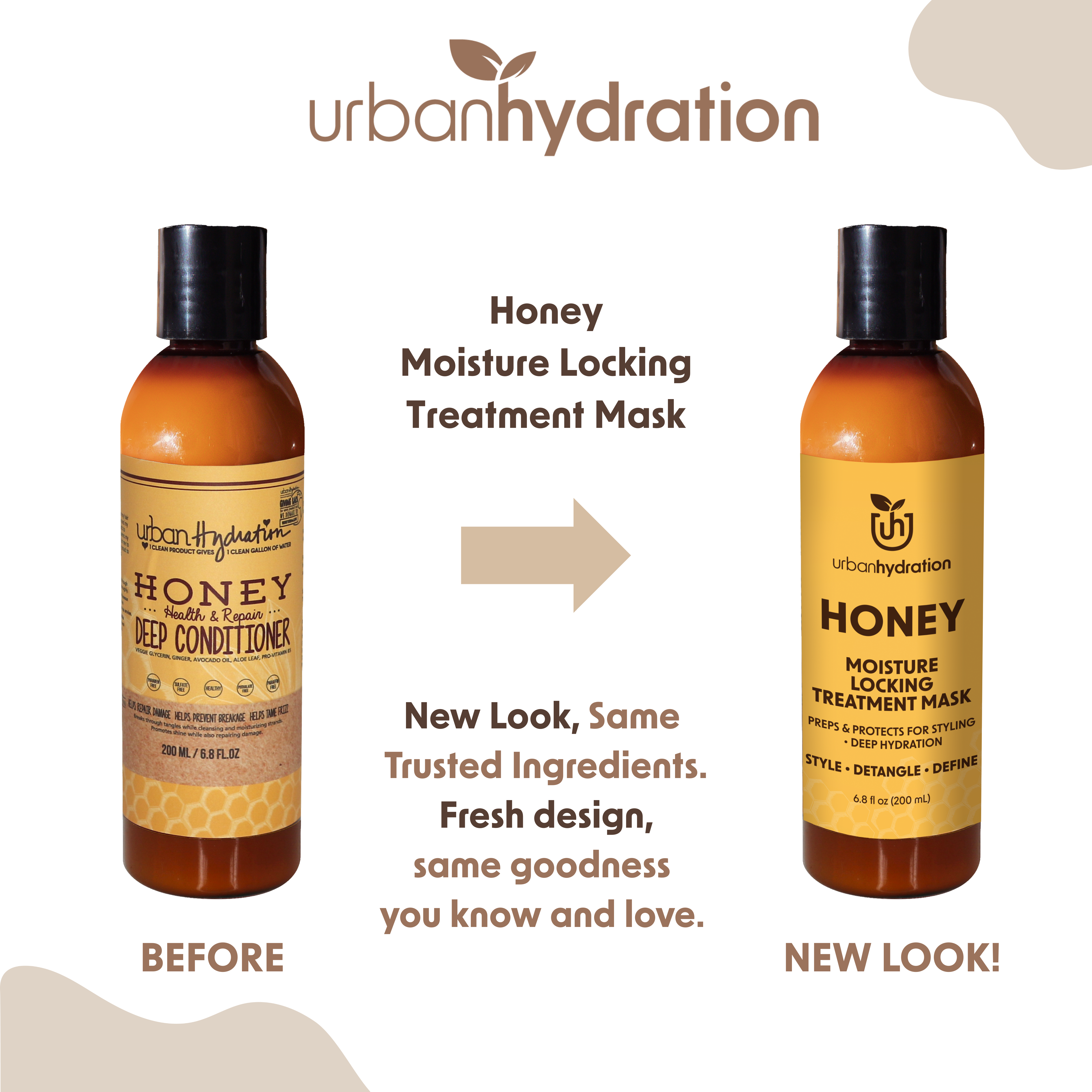 Urban Hydration's Honey Health & Repair Deep Conditioner deeply nourishes and repairs your hair, reducing breakage and frizz while enhancing shine and elasticity. Enriched with Honey, Argan Oil, Aloe Vera, and Sweet Vanilla Bean extracts, this conditioner leaves your hair soft, smooth, and radiant.