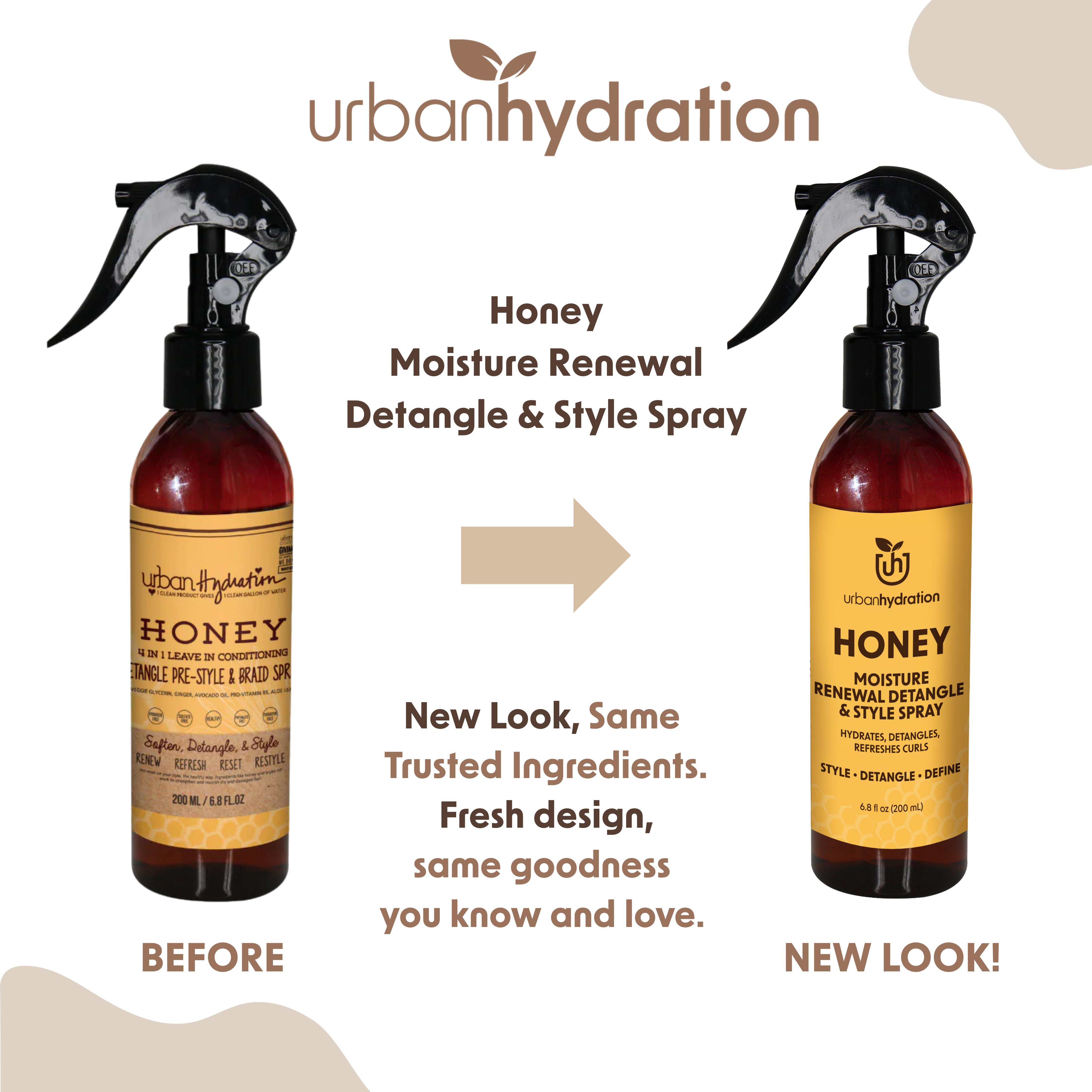 Bid farewell to daily hair struggles with Urban Hydration's Honey Health & Repair Detangling Spray. Infused with the nourishing properties of honey extracts, this spray glides through your hair like a friendly breeze, transforming detangling from a chore into a delightful experience. The powerful blend of Honey, Argan Oil, Aloe Vera, and Sweet Vanilla Bean hydrates, repairs, and adds a radiant shine to your hair, making it soft and manageable.