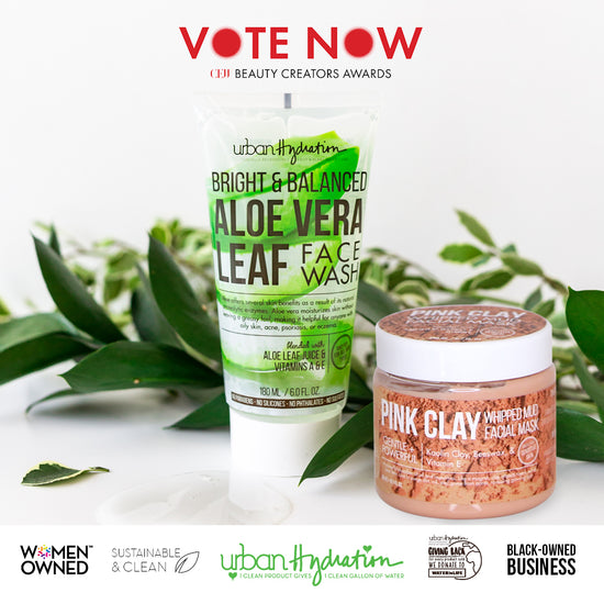 We are thrilled to announce that the Urban Hydration Bright & Balanced Aloe Vera Leaf Face Wash is a finalist in the Cleanser & Scrub category as well as the Urban Hydration Pink Clay Facial Whipped Mud Mask in the Face Masks category for the 2021 CEW Beauty Creator Awards!
