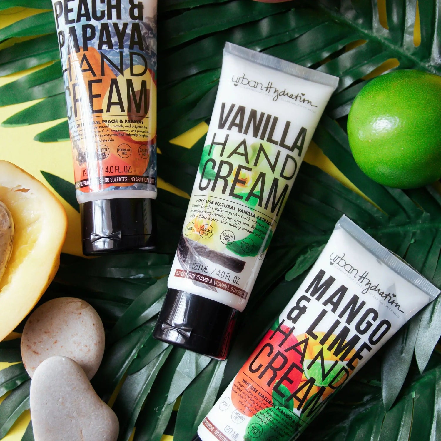 Urban Hydration - Urban Hydration Peach & Papaya Hand Cream 4 fl oz this might be my new favorite hand cream. Makes my hands feel very hydrated, smooth and appearance they look bright and healthy. This hand cream has been a life saver through the cold weather. I carry it with me everywhere. Great product, great quality and also free from parabens and other additives which is a HUGE PLUS FOR ME!!!!